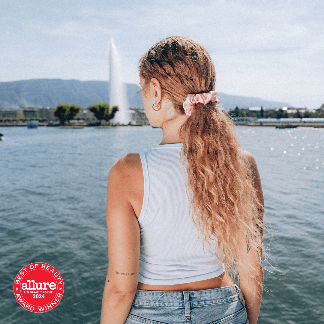 Crafted from 100% natural mulberry silk, grade 6A, 25 momme, the NUITÉ® silk scrunchie respects the hair fiber from the very first use.