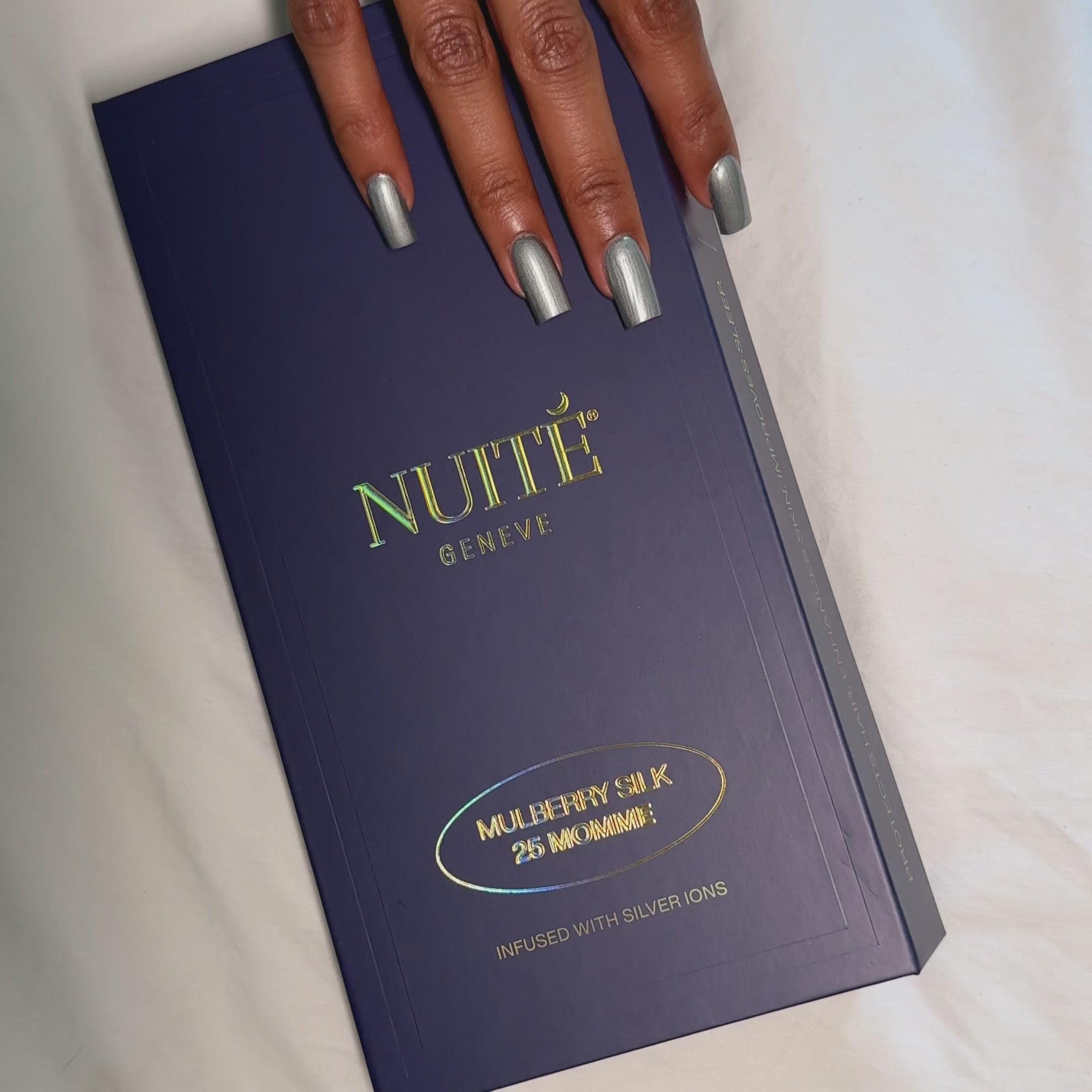 Transform your nights with the NUITÉ® premium silk sleep mask, crafted from 25 momme mulberry silk . Our innovative design fully protects your eyelashes . thanks to its ergonomic contours that create a zero-pressure zone unique on the market, thus fully preserving your eyelashes while you sleep.