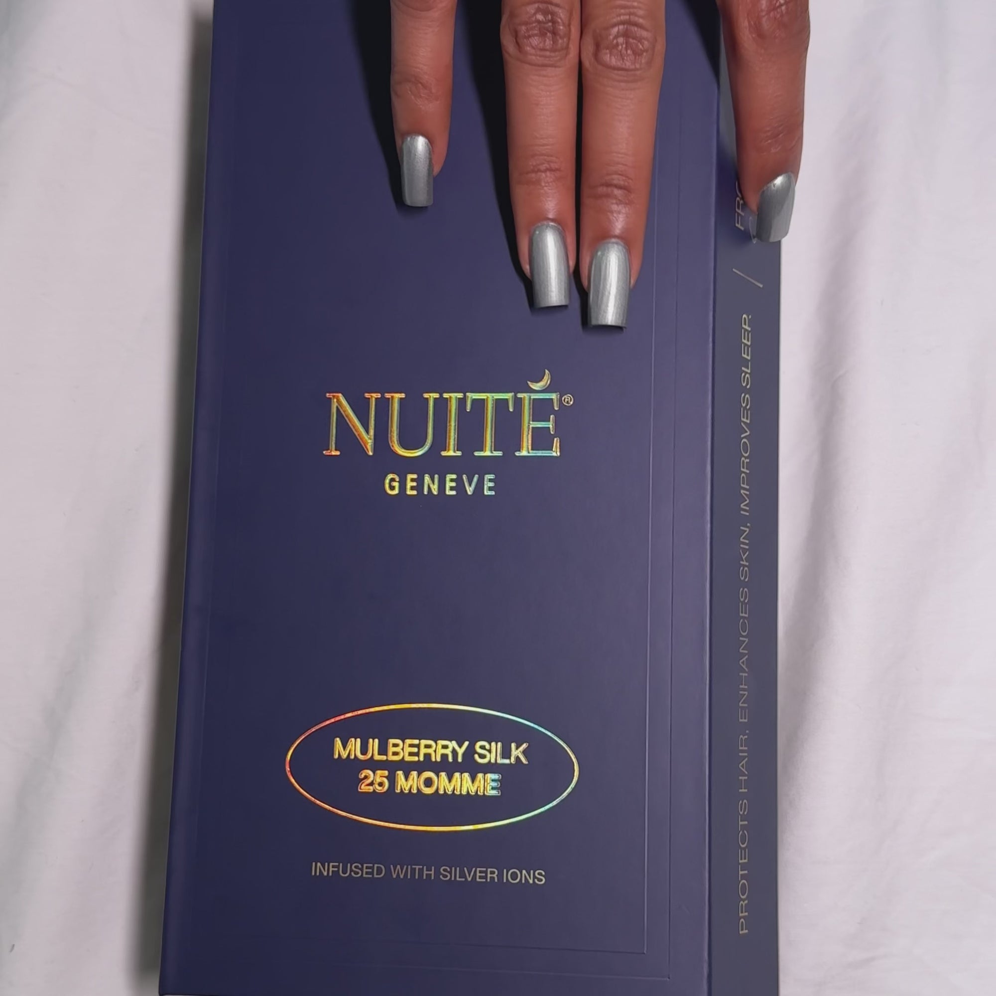 Transform your nights with the NUITÉ® premium silk pillowcase, crafted from 25 momme mulberry silk , softer and more durable than most pillowcases on the market. Designed to reduce friction , it protects your skin and hair while offering absolute comfort.